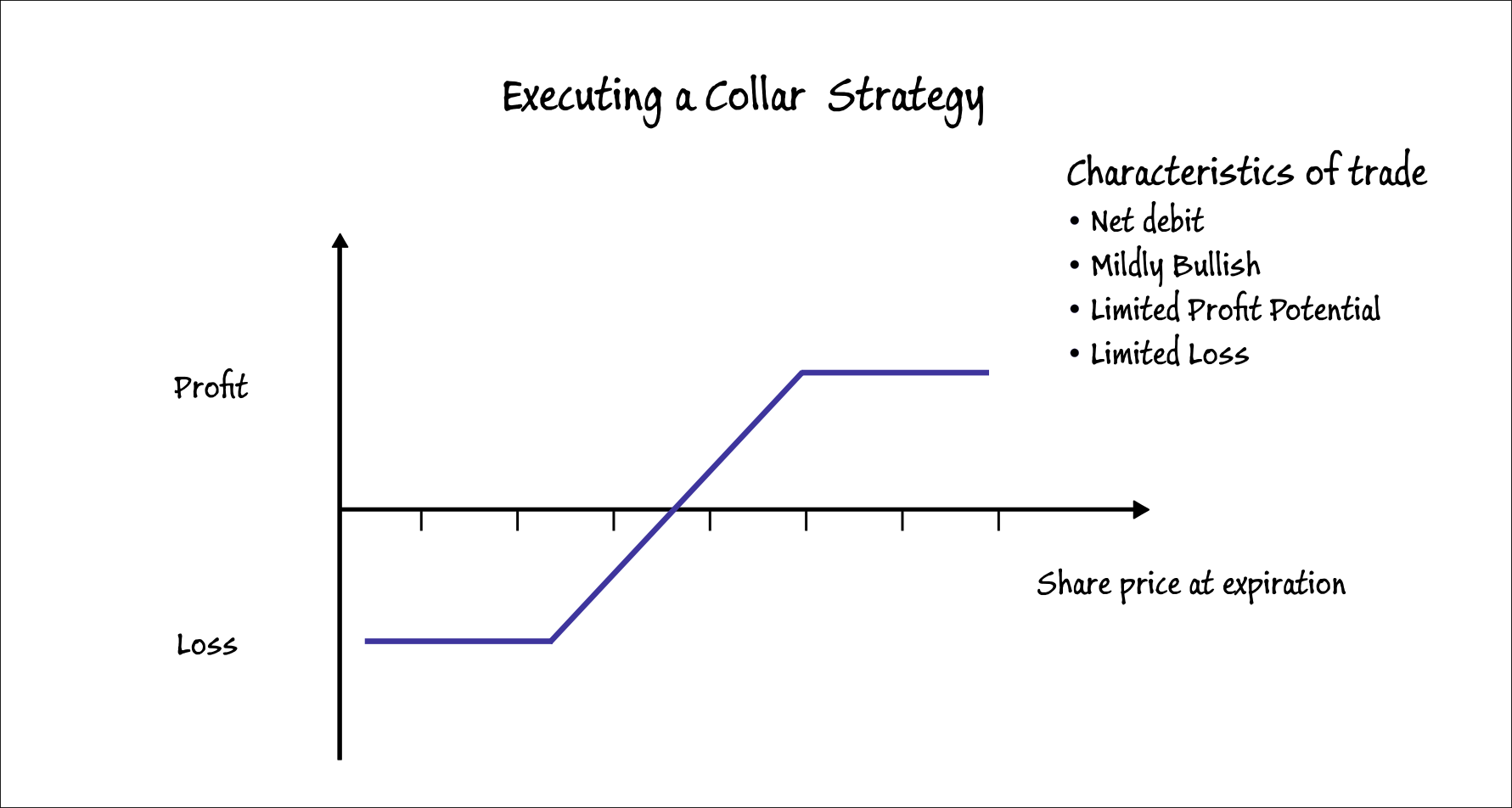 After the trade has been offset, the trader can calculate the amount earned or lost in his diary and review the entire trade process. If there are mistakes, the trader should learn from them. A trader should also try to make a concerted effort to improve risk reward ratio and profitability in a collar.