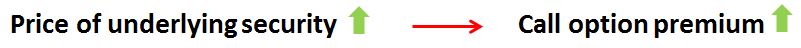 In general, when the price of the underlying security increases, the call option premium will increase. Also, if the price of the underlying security decreases, the option premium will decrease.